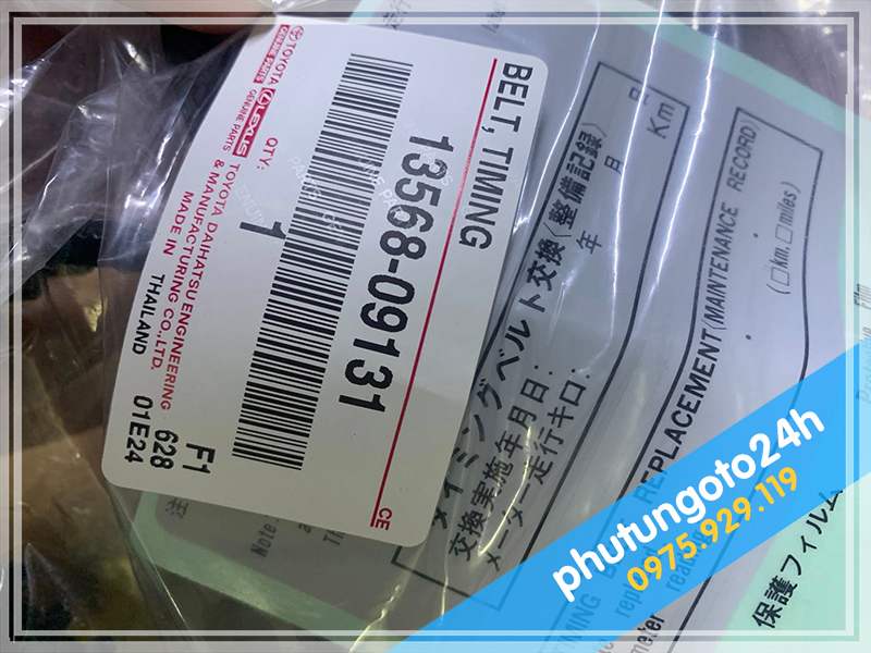Mẫu dây curoa cam xe Fortuner, quy cách đóng gói túi nilon, tem nhãn chuẩn nhà máy Toyota Japan